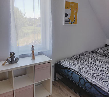 Zaletą domu są trzy niezależne sypialnie wyposażone w fantastyczne łóżka, meble do przechowywania odzieży oraz małą biblioteczkę. Jedna sypialnia znajduje się na parterze i wyposażona jest w wygodne małżeńskie łóżko o wymiarach 140X200. Dwie kolejne sypialnie na piętrze posiadają cztery łóżka o wymiarach 140x200